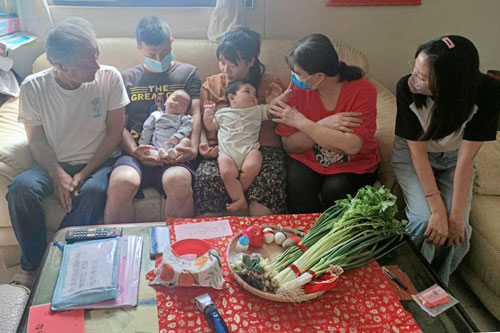 今天是一個很好的日子,寶貝一家人安排寶貝的滿月剃頭儀式,
