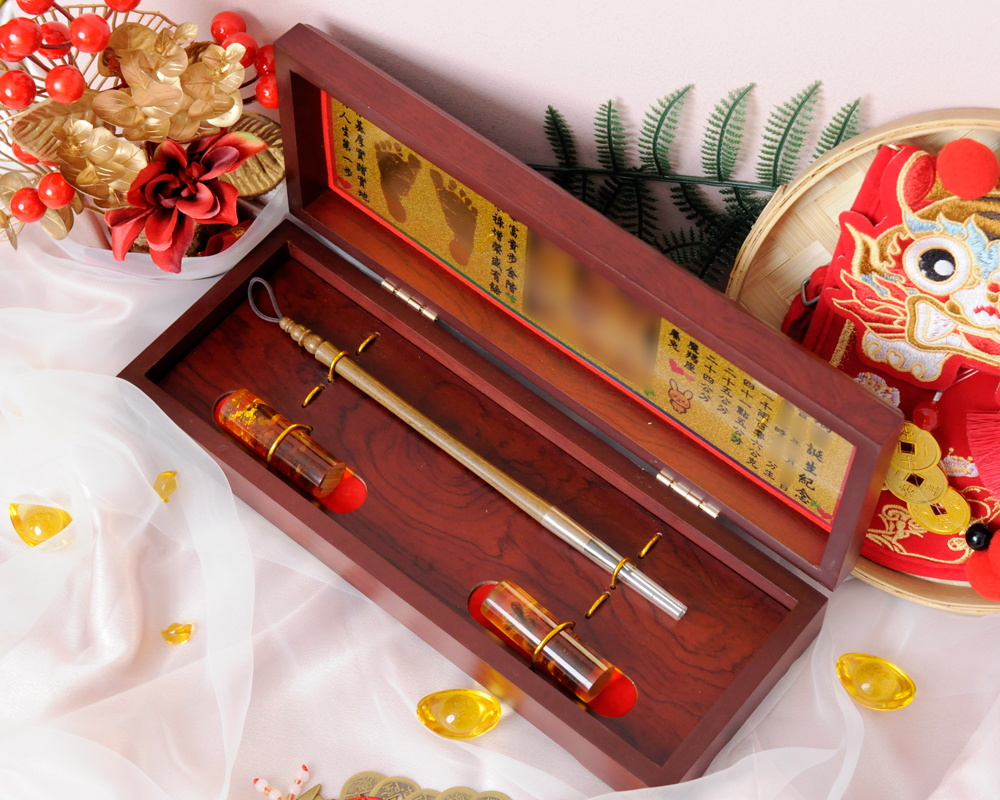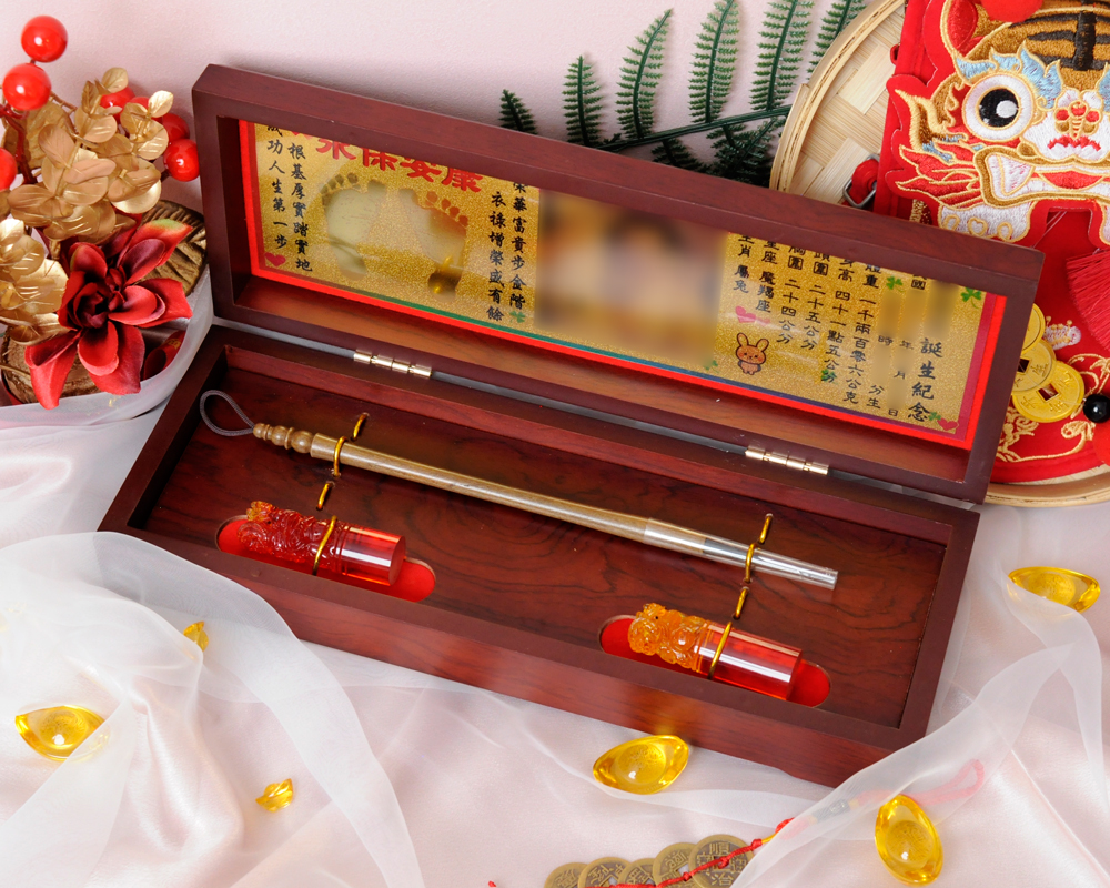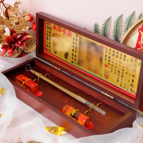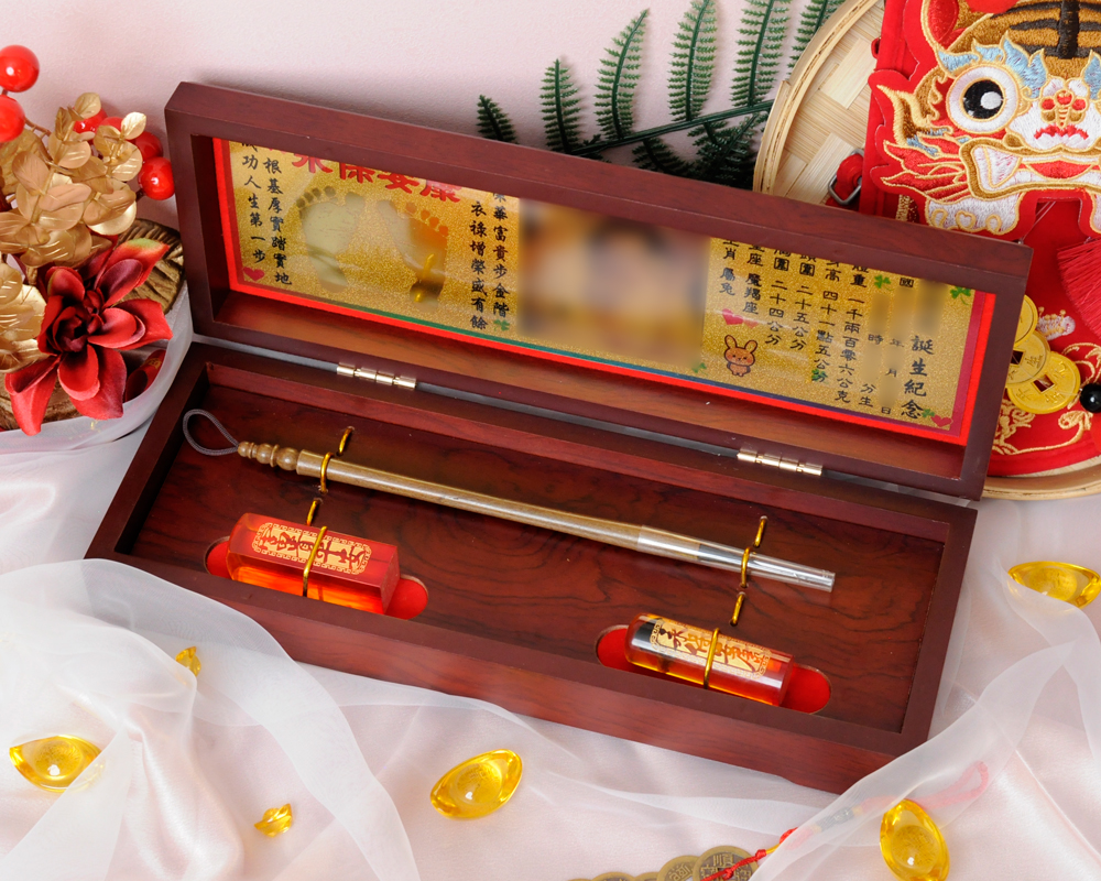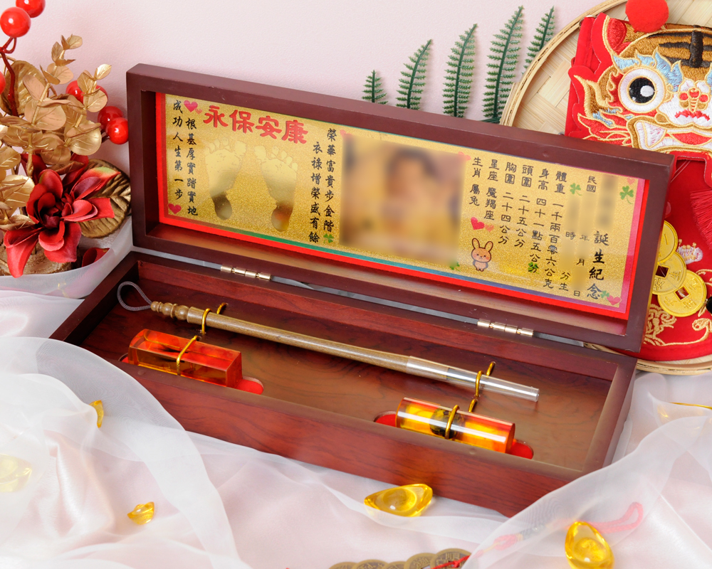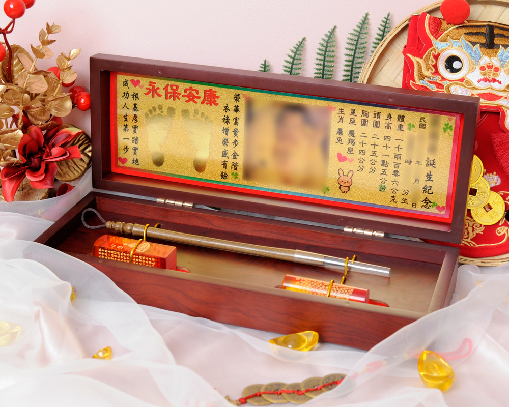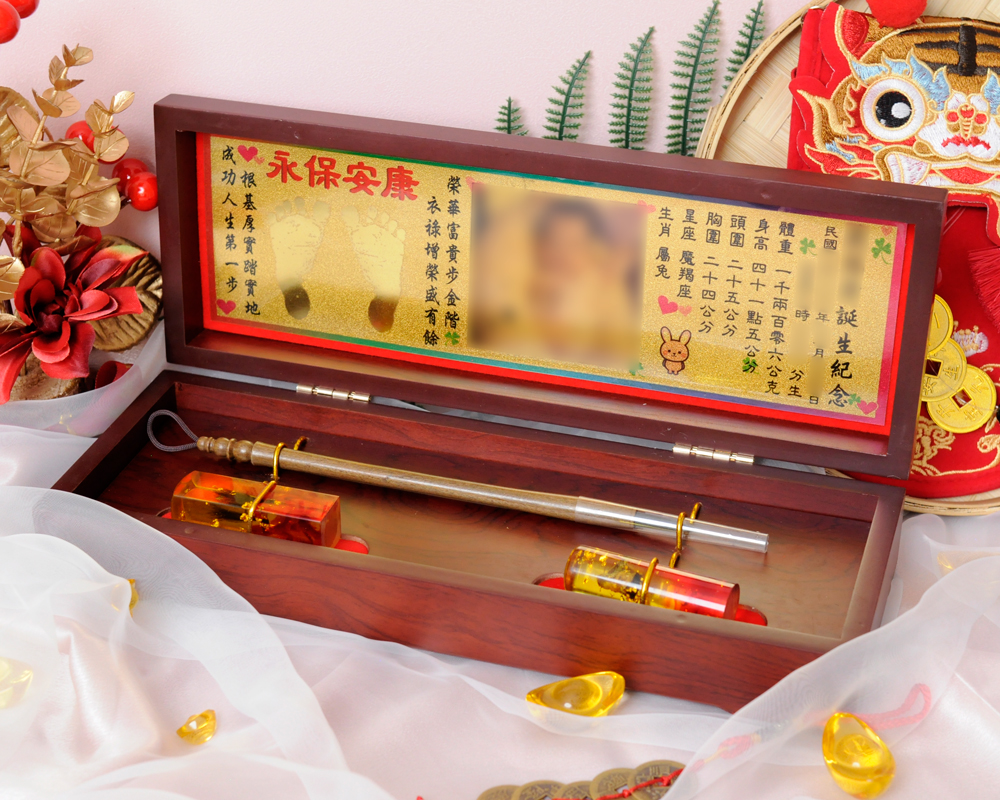 臍帶印章 / 嬰兒三寶組 - 琥珀 【琥珀】二印+一筆+金照片 $7800元 臍帶章-1 規格: 請選擇臍帶章-1 規格 6分 - 方 6分 - 圓 6分2寸半 - 方 (加500元) 6分2寸半 - 圓 (加500元) 臍帶章-1 樣式: 請選擇臍帶章-1 樣式 琥珀 原礦琥珀 (加1000元) 金漆雕刻+金箔 (加1100元) 心經-圓+金箔 (加1300元) 心經-方+金箔 (加1300元) 生肖琥珀 (加1500元) 原礦金箔琥珀 (加1700元) 生肖金箔琥珀 (加2000元) 金漆雕刻 (加500元) 心經-圓 (加700元) 金箔琥珀 (加700元) 心經-方 (加700元) 臍帶章-1 金漆雕刻款式(若無可跳過): 請選擇臍帶章-1 金漆雕刻款式(若無可跳過) 招財進寶(四個字) 招財進寶(圓盤) 財源廣進 永保安康 富貴平安 吉祥如意 富貴 平安 吉祥 如意 刻印字體-1: 請選擇刻印字體-1 印象體 小篆J3 小篆J5 小篆J7 行書S7 行書S5 毛行書S9 篆體J8 篆體J6 方角印篆A2 圓角印篆A3 魏碑體W5 古印體A05 隸書L5 隸書L7 明體M9 仿宋F5 正楷K9 毛楷K8 圓體R7 福體DF7 黑體B7 海報體P5 淡古文O6 順圓印篆 (加200元) 臍帶章-2 規格: 請選擇臍帶章-2 規格 6分 - 方 6分 - 圓 6分2寸半 - 方 (加500元) 6分2寸半 - 圓 (加500元) 臍帶章-2樣式: 請選擇臍帶章-2樣式 琥珀 原礦琥珀 (加1000元) 金漆雕刻+金箔 (加1100元) 心經-圓+金箔 (加1300元) 心經-方+金箔 (加1300元) 生肖琥珀 (加1500元) 原礦金箔琥珀 (加1700元) 生肖金箔琥珀 (加2000元) 金漆雕刻 (加500元) 金箔琥珀 (加700元) 心經-圓 (加700元) 心經-方 (加700元) 臍帶章-2 金漆雕刻款式(若無可跳過): 請選擇臍帶章-2 金漆雕刻款式(若無可跳過) 招財進寶(四個字) 招財進寶(圓盤) 財源廣進 永保安康 富貴平安 吉祥如意 富貴 平安 吉祥 如意 刻印字體-2: 請選擇刻印字體-2 印象體 小篆J3 小篆J5 小篆J7 行書S7 行書S5 毛行書S9 篆體J8 篆體J6 方角印篆A2 圓角印篆A3 魏碑體W5 古印體A05 隸書L5 隸書L7 明體M9 仿宋F5 正楷K9 毛楷K8 圓體R7 福體DF7 黑體B7 海報體P5 淡古文O6 順圓印篆 (加200元) 胎毛筆材質: 請選擇胎毛筆材質 綠檀 黑檀 紅紫檀 琥珀/赤牛角 (加100元) 生肖琥珀(若無可跳過): 請選擇生肖琥珀(若無可跳過) 鼠 牛 虎 兔 龍 蛇 馬 羊 猴 雞 狗 豬 刻印名字: 數量 - + 加入購物車 商品描述 1.商品製作時間為30~60個工作天,工作天不含六、日及國定假日,請確認沒有問題後再下單。 2.下單前建議加LINE@線上客服(帳號:@ahg1419i) 3.商品為純手工製作,故請依實品為主。 4.價格如有異動未能及時更新,以本公司實際販售價格為主,請見諒。 印章材質:琥珀 印章高度:兩吋長約6 cm / 兩吋半長約7.5 cm 印面尺寸:約1.8cm x 1.8cm 給媽咪的紀念,送寶貝的祝福~傳家珍藏象徵孩子出生、媽媽辛苦懷胎十月的胎毛與臍帶。臍帶章、胎毛章、髮臍章是祝福寶貝平安健康的長大,一輩子最好的紀念禮物、滿月禮物。 唯原工藝肚臍印章的刻印工法有:純手工刻印印章、半手工刻印印章、純手工噴砂玉石礦石印章、半手工噴砂玉石礦石印章、電腦刻印。台南在地刻印老店數十年的刻印經驗,傳承職人精神,專注刻印品質與細節,每顆印章都值得您細心品味,每顆印章都值得您傳家珍藏。 嚴選【琥珀】臍帶章 唯原工藝【臍帶章】給寶貝的第一份禮物,永恆的愛與祝福。嚴選【琥珀】特A級品質,全方位滿足每一位爸爸媽媽,為寶貝挑選第一份禮物,製作最具實用及紀念價值的滿月禮嬰兒三寶。給媽媽的紀念;送給寶寶的祝福, 珍藏象徵寶寶出生、成長;媽媽懷胎十月的出生胎毛與臍帶,祝福寶寶平安健康的長大,肚臍章是給寶貝最好的紀念禮物。 商品組合:肚臍章x2、胎毛筆x1、金照片/金腳印x1、木盒x1 琥珀 金箔琥珀 原礦琥珀 心經雕刻琥珀 金漆雕刻琥珀 >>查看金漆雕刻樣式請點我<< 生肖雕刻琥珀 >>查看生肖樣式請點我<< 加碼贈品 每人限定一份,贈品內容:防撞布包x1 贈品款式為隨機出貨,下圖為示意圖,贈品款是以實際收到的為主。 琥珀臍帶章 ★新生兒的胎毛頭髮在台語的發音為「發」,臍帶的台語發音為「肚財」並取財為主,將二者同時放在一方一圓的印章中即為發財印章,所以這是給新生兒最好的禮物。 ★乳牙象徵含義有「咬錢入庫」,這些都象徵家人對著新生兒的祝福與期待。以民間習俗來說,若製作一對臍帶胎毛章,圓章放臍帶,方章放胎毛;若是製作單章會將胎毛、臍帶一起放。圓章、方章的應用上,「圓章」適合用在流動性資產,例如銀行開戶、基金股票投資、圓形的意象也有「錢滾錢」的象徵;「方章」則是用在不動產、商業合約等用途,有關信用、誠信,方形「方方正ˋ正、四平八穩」的形象,有如守信、永恆不變的象徵。 【琥珀】臍帶章 天然印材 獨特唯一 琥珀顏色、紋路、斑點均為自然生成,每個琥珀印材都是獨一無二的,建議加LINE@線上客服詢問(帳號:@ahg1419i) 【琥珀】臍帶章 字體選擇 【琥珀】肚臍章-尺寸說明 加購【高級檀木印章盒】 材質有頂級紫光黑檀木與頂級紅紫檀木,印章章盒規格齊全,建議加LINE@線上客服(帳號:@ahg1419i) ,客服可提供檀木印章盒照片。