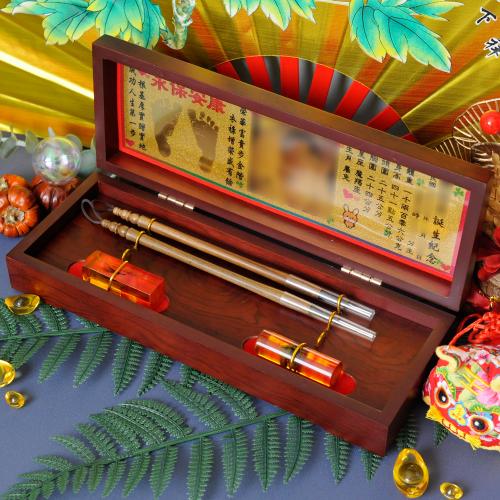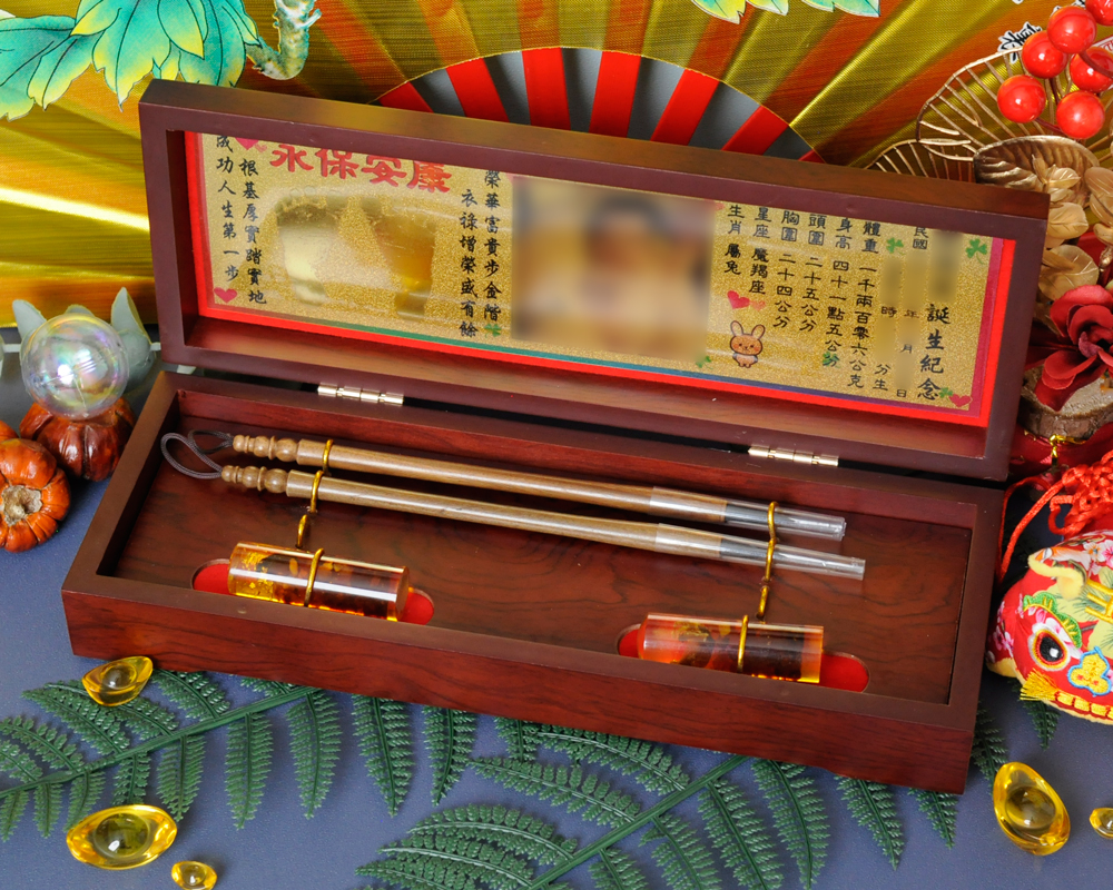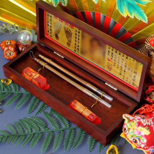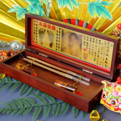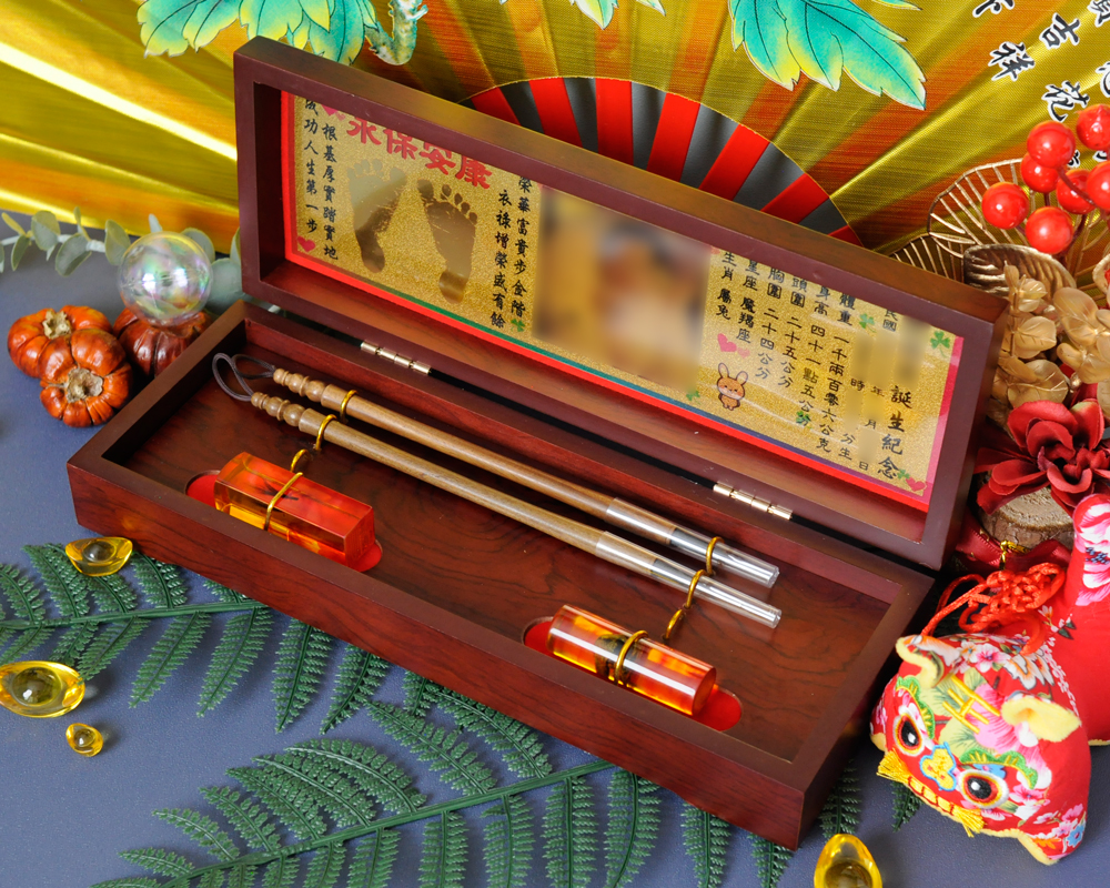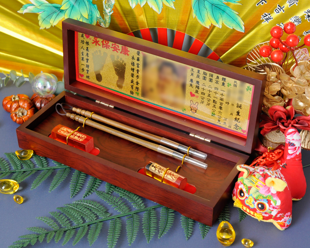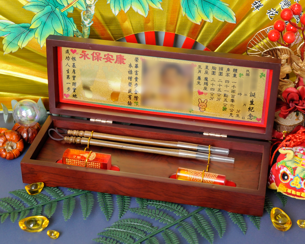 臍帶印章 / 嬰兒三寶組 - 琥珀 【琥珀】二印+二筆+金照片 $9600元 臍帶章-1 規格: 請選擇臍帶章-1 規格 6分 - 方 6分 - 圓 6分2寸半 - 方 (加500元) 6分2寸半 - 圓 (加500元) 臍帶章-1 樣式: 請選擇臍帶章-1 樣式 琥珀 原礦琥珀 (加1000元) 金漆雕刻+金箔 (加1100元) 心經-圓+金箔 (加1300元) 心經-方+金箔 (加1300元) 生肖琥珀 (加1500元) 原礦金箔琥珀 (加1700元) 生肖金箔琥珀 (加2000元) 金漆雕刻 (加500元) 心經-圓 (加700元) 金箔琥珀 (加700元) 心經-方 (加700元) 臍帶章-1 金漆雕刻款式(若無可跳過): 請選擇臍帶章-1 金漆雕刻款式(若無可跳過) 招財進寶(四個字) 招財進寶(圓盤) 財源廣進 永保安康 富貴平安 吉祥如意 富貴 平安 吉祥 如意 刻印字體-1: 請選擇刻印字體-1 印象體 小篆J3 小篆J5 小篆J7 行書S7 行書S5 毛行書S9 篆體J8 篆體J6 方角印篆A2 圓角印篆A3 魏碑體W5 古印體A05 隸書L5 隸書L7 明體M9 仿宋F5 正楷K9 毛楷K8 圓體R7 福體DF7 黑體B7 海報體P5 淡古文O6 順圓印篆 (加200元) 臍帶章-2 規格: 請選擇臍帶章-2 規格 6分 - 方 6分 - 圓 6分2寸半 - 方 (加500元) 6分2寸半 - 圓 (加500元) 臍帶章-2樣式: 請選擇臍帶章-2樣式 琥珀 原礦琥珀 (加1000元) 金漆雕刻+金箔 (加1100元) 心經-圓+金箔 (加1300元) 心經-方+金箔 (加1300元) 生肖琥珀 (加1500元) 原礦金箔琥珀 (加1700元) 生肖金箔琥珀 (加2000元) 金漆雕刻 (加500元) 金箔琥珀 (加700元) 心經-圓 (加700元) 心經-方 (加700元) 臍帶章-2 金漆雕刻款式(若無可跳過): 請選擇臍帶章-2 金漆雕刻款式(若無可跳過) 招財進寶(四個字) 招財進寶(圓盤) 財源廣進 永保安康 富貴平安 吉祥如意 富貴 平安 吉祥 如意 刻印字體-2: 請選擇刻印字體-2 印象體 小篆J3 小篆J5 小篆J7 行書S7 行書S5 毛行書S9 篆體J8 篆體J6 方角印篆A2 圓角印篆A3 魏碑體W5 古印體A05 隸書L5 隸書L7 明體M9 仿宋F5 正楷K9 毛楷K8 圓體R7 福體DF7 黑體B7 海報體P5 淡古文O6 順圓印篆 (加200元) 胎毛筆-1 樣式: 請選擇胎毛筆-1 樣式 綠檀 黑檀 紅紫檀 琥珀/赤牛角 (加100元) 胎毛筆-2 樣式: 請選擇胎毛筆-2 樣式 綠檀 黑檀 紅紫檀 琥珀/赤牛角 (加100元) 生肖琥珀(若無可跳過): 請選擇生肖琥珀(若無可跳過) 鼠 牛 虎 兔 龍 蛇 馬 羊 猴 雞 狗 豬 刻印名字: 數量 - + 加入購物車 商品描述 1.商品製作時間為30~60個工作天,工作天不含六、日及國定假日,請確認沒有問題後再下單。 2.下單前建議加LINE@線上客服(帳號:@ahg1419i) 3.商品為純手工製作,故請依實品為主。 4.價格如有異動未能及時更新,以本公司實際販售價格為主,請見諒。 印章材質:琥珀 印章高度:兩吋長約6 cm / 兩吋半長約7.5 cm 印面尺寸:約1.8cm x 1.8cm 給媽咪的紀念,送寶貝的祝福~傳家珍藏象徵孩子出生、媽媽辛苦懷胎十月的胎毛與臍帶。臍帶章、胎毛章、髮臍章是祝福寶貝平安健康的長大,一輩子最好的紀念禮物、滿月禮物。 唯原工藝肚臍印章的刻印工法有:純手工刻印印章、半手工刻印印章、純手工噴砂玉石礦石印章、半手工噴砂玉石礦石印章、電腦刻印。台南在地刻印老店數十年的刻印經驗,傳承職人精神,專注刻印品質與細節,每顆印章都值得您細心品味,每顆印章都值得您傳家珍藏。 嚴選【琥珀】臍帶章 唯原工藝【臍帶章】給寶貝的第一份禮物,永恆的愛與祝福。嚴選【琥珀】特A級品質,全方位滿足每一位爸爸媽媽,為寶貝挑選第一份禮物,製作最具實用及紀念價值的滿月禮嬰兒三寶。給媽媽的紀念;送給寶寶的祝福, 珍藏象徵寶寶出生、成長;媽媽懷胎十月的出生胎毛與臍帶,祝福寶寶平安健康的長大,肚臍章是給寶貝最好的紀念禮物。 商品組合:肚臍章x2、胎毛筆x2、金照片x1、木盒x1 琥珀 金箔琥珀 原礦琥珀 心經雕刻琥珀 金漆雕刻琥珀 >>查看金漆雕刻樣式請點我<< 生肖雕刻琥珀 >>查看生肖樣式請點我<< 加碼贈品 每人限定一份,贈品內容:防撞布包x1 贈品款式為隨機出貨,下圖為示意圖,贈品款是以實際收到的為主。 琥珀臍帶章 ★新生兒的胎毛頭髮在台語的發音為「發」,臍帶的台語發音為「肚財」並取財為主,將二者同時放在一方一圓的印章中即為發財印章,所以這是給新生兒最好的禮物。 ★乳牙象徵含義有「咬錢入庫」,這些都象徵家人對著新生兒的祝福與期待。以民間習俗來說,若製作一對臍帶胎毛章,圓章放臍帶,方章放胎毛;若是製作單章會將胎毛、臍帶一起放。圓章、方章的應用上,「圓章」適合用在流動性資產,例如銀行開戶、基金股票投資、圓形的意象也有「錢滾錢」的象徵;「方章」則是用在不動產、商業合約等用途,有關信用、誠信,方形「方方正ˋ正、四平八穩」的形象,有如守信、永恆不變的象徵。 【琥珀】臍帶章 天然印材 獨特唯一 琥珀顏色、紋路、斑點均為自然生成,每個琥珀印材都是獨一無二的,建議加LINE@線上客服詢問(帳號:@ahg1419i) 【琥珀】臍帶章 字體選擇 【琥珀】肚臍章-尺寸說明 加購【高級檀木印章盒】 材質有頂級紫光黑檀木與頂級紅紫檀木,印章章盒規格齊全,建議加LINE@線上客服(帳號:@ahg1419i) ,客服可提供檀木印章盒照片。
