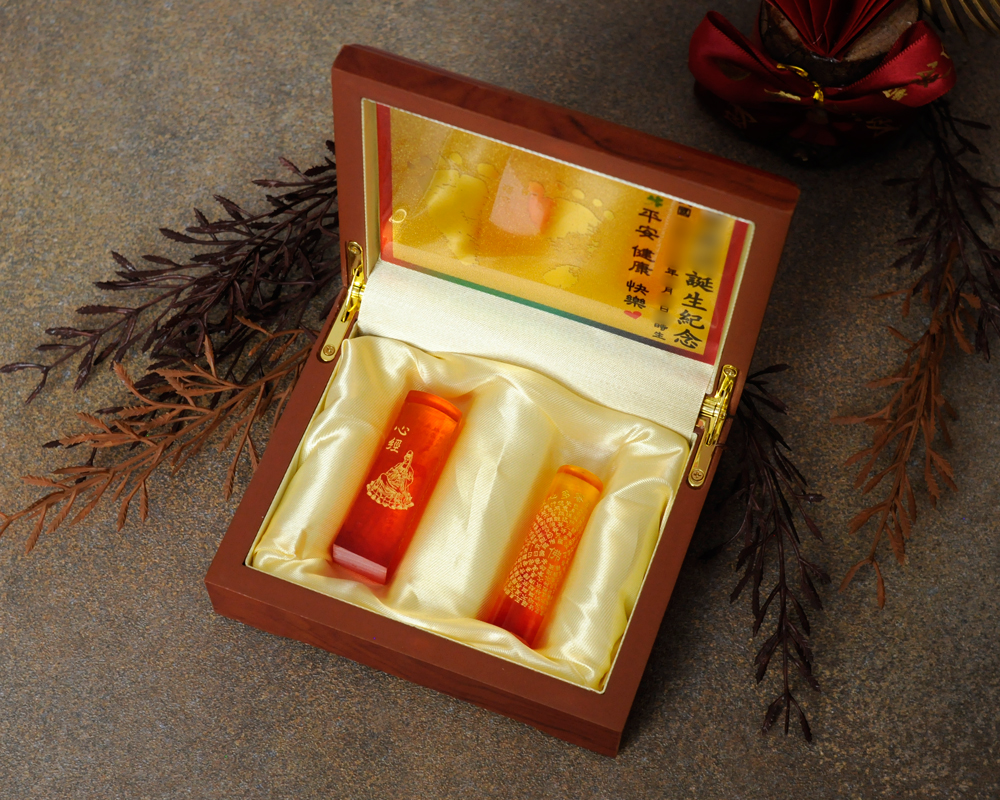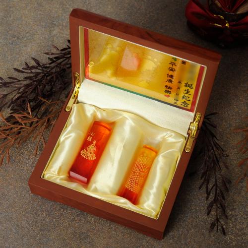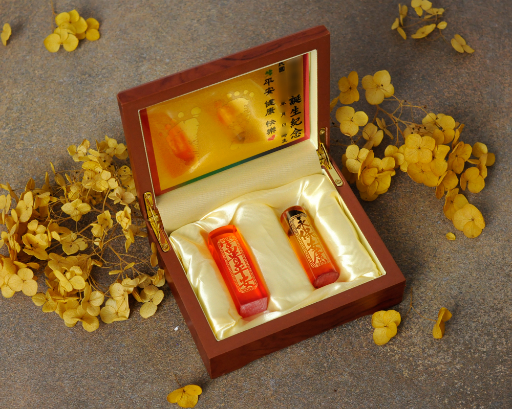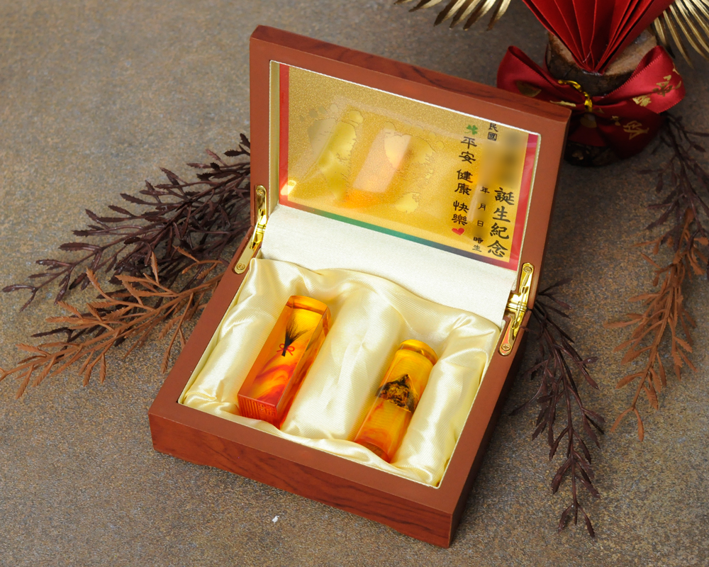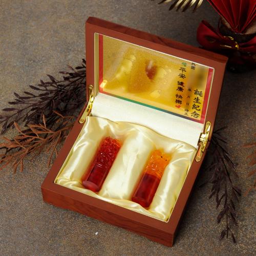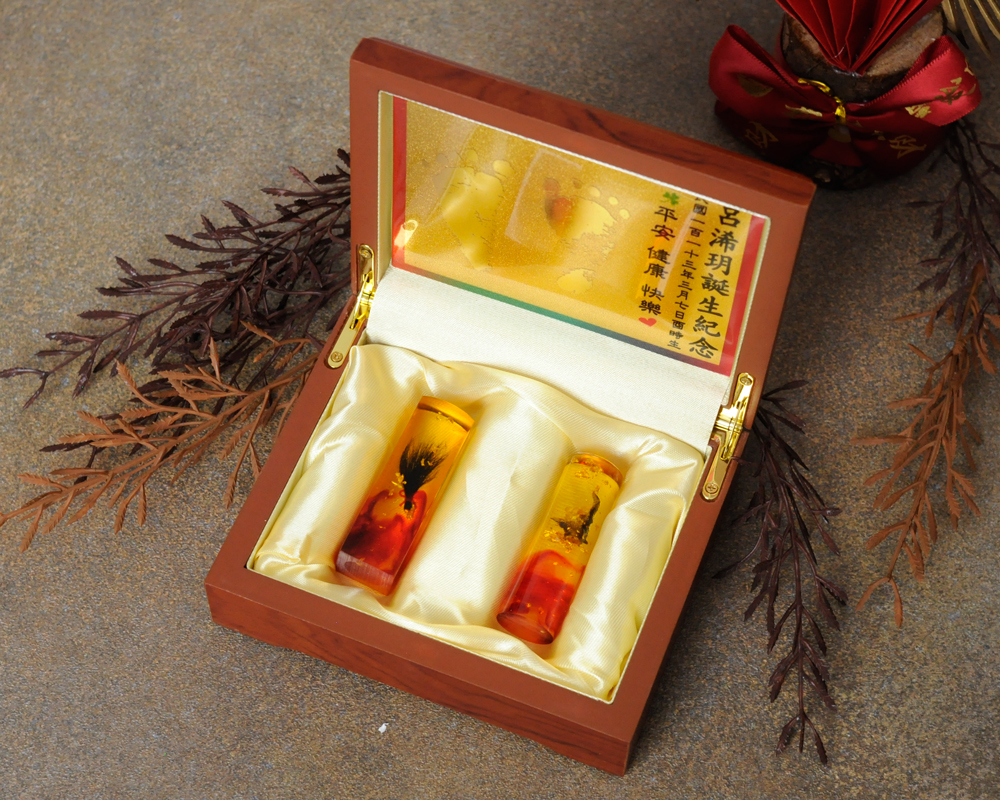 臍帶印章 / 嬰兒三寶組 - 琥珀 【琥珀】二印+金照片 $6000元 臍帶章-1 規格: 請選擇臍帶章-1 規格 6分 - 方 6分 - 圓 6分2寸半 - 方 (加500元) 6分2寸半 - 圓 (加500元) 臍帶章-1 樣式: 請選擇臍帶章-1 樣式 琥珀 原礦琥珀 (加1000元) 金漆雕刻+金箔 (加1100元) 心經-圓+金箔 (加1300元) 心經-方+金箔 (加1300元) 生肖琥珀 (加1500元) 原礦金箔琥珀 (加1700元) 生肖金箔琥珀 (加2000元) 金漆雕刻 (加500元) 心經-圓 (加700元) 金箔琥珀 (加700元) 心經-方 (加700元) 臍帶章-1 金漆雕刻款式(若無可跳過): 請選擇臍帶章-1 金漆雕刻款式(若無可跳過) 招財進寶(四個字) 招財進寶(圓盤) 財源廣進 永保安康 富貴平安 吉祥如意 富貴 平安 吉祥 如意 刻印字體-1: 請選擇刻印字體-1 印象體 小篆J3 小篆J5 小篆J7 行書S7 行書S5 毛行書S9 篆體J8 篆體J6 方角印篆A2 圓角印篆A3 魏碑體W5 古印體A05 隸書L5 隸書L7 明體M9 仿宋F5 正楷K9 毛楷K8 圓體R7 福體DF7 黑體B7 海報體P5 淡古文O6 順圓印篆 (加200元) 臍帶章-2 規格: 請選擇臍帶章-2 規格 6分 - 方 6分 - 圓 6分2寸半 - 方 (加500元) 6分2寸半 - 圓 (加500元) 臍帶章-2樣式: 請選擇臍帶章-2樣式 琥珀 原礦琥珀 (加1000元) 金漆雕刻+金箔 (加1100元) 心經-圓+金箔 (加1300元) 心經-方+金箔 (加1300元) 生肖琥珀 (加1500元) 原礦金箔琥珀 (加1700元) 生肖金箔琥珀 (加2000元) 金漆雕刻 (加500元) 金箔琥珀 (加700元) 心經-圓 (加700元) 心經-方 (加700元) 臍帶章-2 金漆雕刻款式(若無可跳過): 請選擇臍帶章-2 金漆雕刻款式(若無可跳過) 招財進寶(四個字) 招財進寶(圓盤) 財源廣進 永保安康 富貴平安 吉祥如意 富貴 平安 吉祥 如意 刻印字體-2: 請選擇刻印字體-2 印象體 小篆J3 小篆J5 小篆J7 行書S7 行書S5 毛行書S9 篆體J8 篆體J6 方角印篆A2 圓角印篆A3 魏碑體W5 古印體A05 隸書L5 隸書L7 明體M9 仿宋F5 正楷K9 毛楷K8 圓體R7 福體DF7 黑體B7 海報體P5 淡古文O6 順圓印篆 (加200元) 生肖琥珀(若無可跳過): 請選擇生肖琥珀(若無可跳過) 鼠 牛 虎 兔 龍 蛇 馬 羊 猴 雞 狗 豬 刻印名字: 數量 - + 加入購物車 商品描述 1.商品製作時間為30~60個工作天,工作天不含六、日及國定假日,請確認沒有問題後再下單。 2.下單前建議加LINE@線上客服(帳號:@ahg1419i) 3.商品為純手工製作,故請依實品為主。 4.價格如有異動未能及時更新,以本公司實際販售價格為主,請見諒。 印章材質:琥珀 印章高度:兩吋長約6 cm / 兩吋半長約7.5 cm 印面尺寸:約1.8cm x 1.8cm 給媽咪的紀念,送寶貝的祝福~傳家珍藏象徵孩子出生、媽媽辛苦懷胎十月的胎毛與臍帶。臍帶章、胎毛章、髮臍章是祝福寶貝平安健康的長大,一輩子最好的紀念禮物、滿月禮物。 唯原工藝肚臍印章的刻印工法有:純手工刻印印章、半手工刻印印章、純手工噴砂玉石礦石印章、半手工噴砂玉石礦石印章、電腦刻印。台南在地刻印老店數十年的刻印經驗,傳承職人精神,專注刻印品質與細節,每顆印章都值得您細心品味,每顆印章都值得您傳家珍藏。 嚴選【琥珀】臍帶章 唯原工藝【臍帶章】給寶貝的第一份禮物,永恆的愛與祝福。嚴選【琥珀】特A級品質,全方位滿足每一位爸爸媽媽,為寶貝挑選第一份禮物,製作最具實用及紀念價值的滿月禮嬰兒三寶。給媽媽的紀念;送給寶寶的祝福, 珍藏象徵寶寶出生、成長;媽媽懷胎十月的出生胎毛與臍帶,祝福寶寶平安健康的長大,肚臍章是給寶貝最好的紀念禮物。 商品組合:肚臍章x2、金照片x1、木盒x1 琥珀 金箔琥珀 心經雕刻琥珀 金漆雕刻琥珀 生肖雕刻琥珀 >>查看生肖樣式請點我<< 加碼贈品 每人限定一份,贈品內容:防撞布包x1 贈品款式為隨機出貨,下圖為示意圖,贈品款是以實際收到的為主。 琥珀臍帶章 ★新生兒的胎毛頭髮在台語的發音為「發」,臍帶的台語發音為「肚財」並取財為主,將二者同時放在一方一圓的印章中即為發財印章,所以這是給新生兒最好的禮物。 ★乳牙象徵含義有「咬錢入庫」,這些都象徵家人對著新生兒的祝福與期待。以民間習俗來說,若製作一對臍帶胎毛章,圓章放臍帶,方章放胎毛;若是製作單章會將胎毛、臍帶一起放。圓章、方章的應用上,「圓章」適合用在流動性資產,例如銀行開戶、基金股票投資、圓形的意象也有「錢滾錢」的象徵;「方章」則是用在不動產、商業合約等用途,有關信用、誠信,方形「方方正ˋ正、四平八穩」的形象,有如守信、永恆不變的象徵。 【琥珀】臍帶章 天然印材 獨特唯一 琥珀顏色、紋路、斑點均為自然生成,每個琥珀印材都是獨一無二的,建議加LINE@線上客服詢問(帳號:@ahg1419i) 【琥珀】臍帶章 字體選擇 【琥珀】肚臍章-尺寸說明 加購【高級檀木印章盒】 材質有頂級紫光黑檀木與頂級紅紫檀木,印章章盒規格齊全,建議加LINE@線上客服(帳號:@ahg1419i) ,客服可提供檀木印章盒照片。