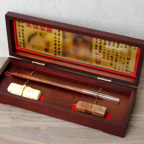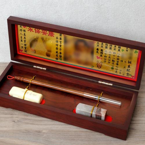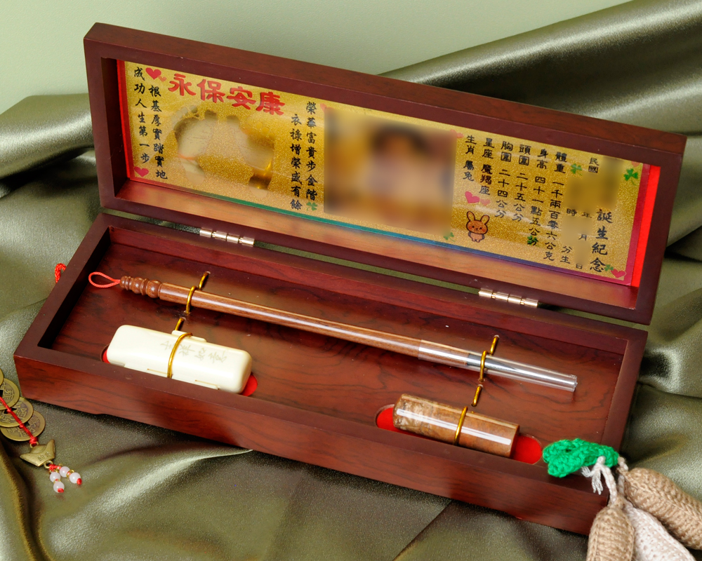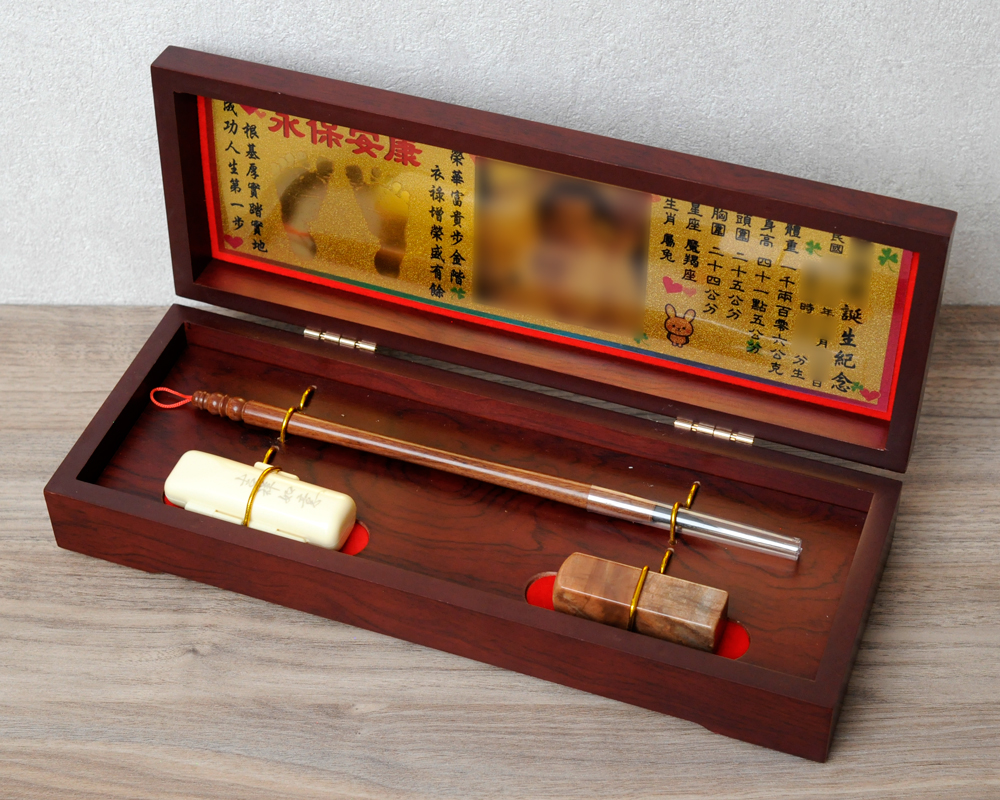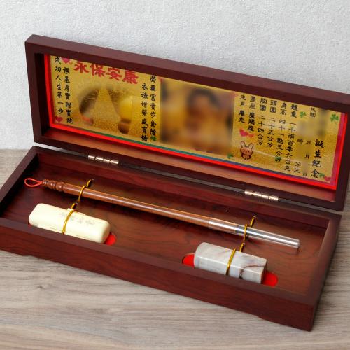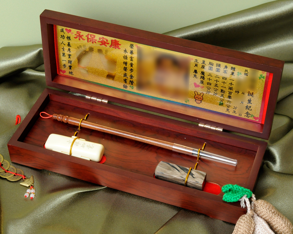 商品組合:肚臍章x1、胎毛筆x1、金照片x1、木盒x1
