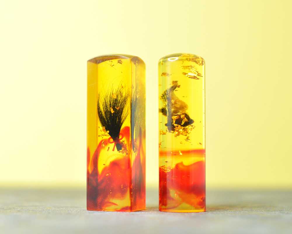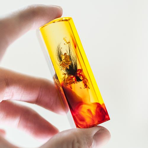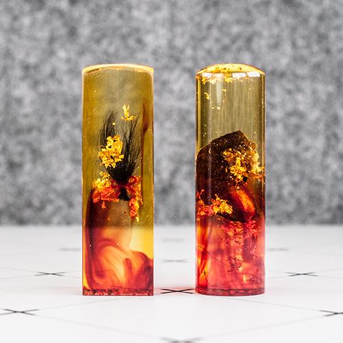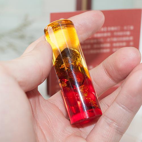 金箔琥珀為純手工製作,每個金箔琥珀印材都是獨一無二的,建議加LINE@線上客服(帳號:@ahg1419i)