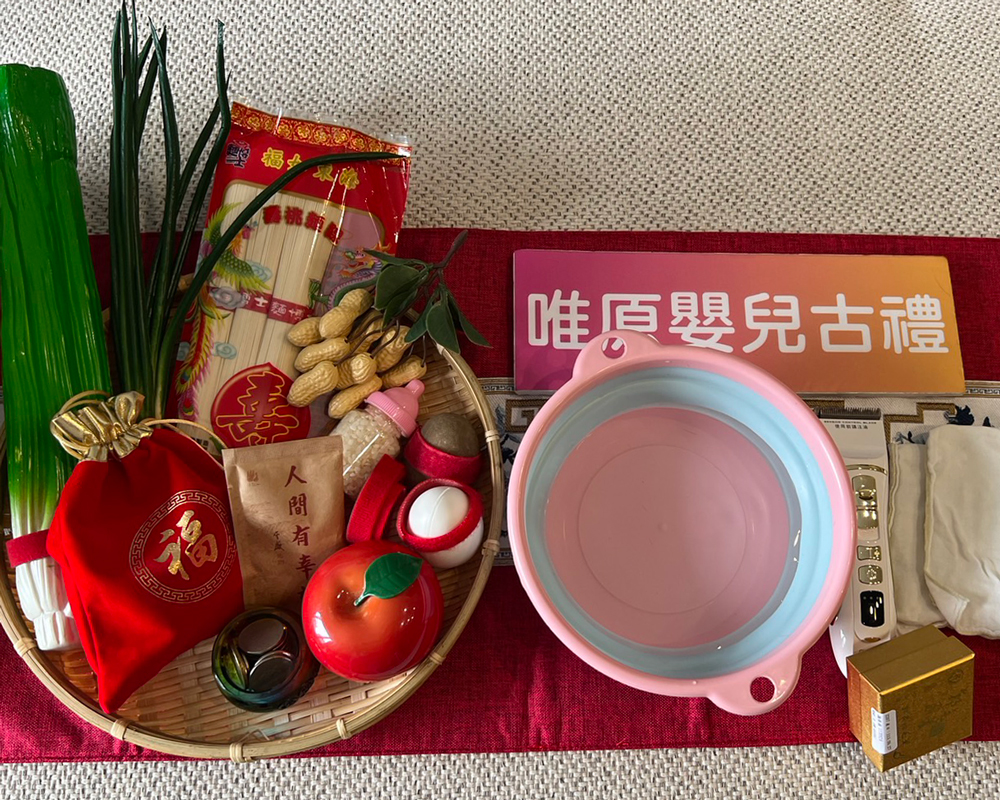 家長需要自行準備:(蔥、韭菜、芹菜、熟雞蛋、熟鴨蛋、石頭、銅板、臉盆、紗布巾)。附註:若家長需要我們幫忙準備,則需額外收備品費用。
