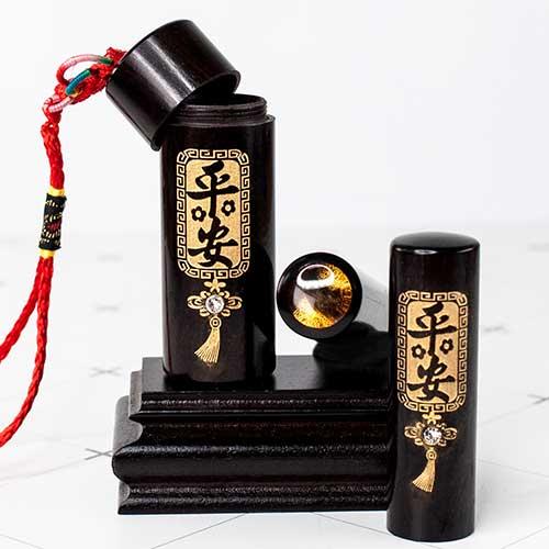 頂級檀木-黑檀臍帶章套筒組 | 平安.富貴