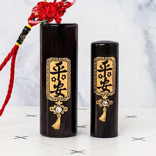 頂級檀木-黑檀臍帶章套筒組 | 招財進寶(一字).富貴平安