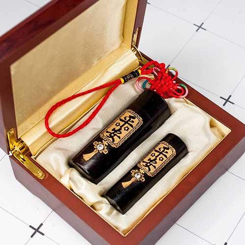 頂級檀木-黑檀臍帶章套筒組 | 財源廣進.招財進寶(四字)