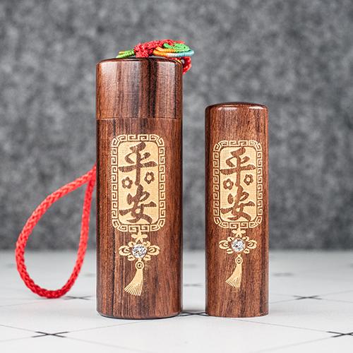 頂級檀木-紅紫檀臍帶章套筒組 | 平安