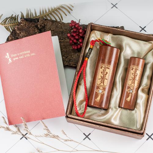 頂級檀木-紅紫檀臍帶章套筒組 | 吉祥如意