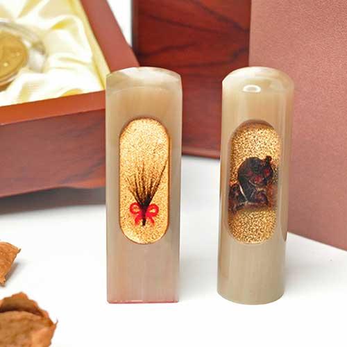 牛角顏色、紋路、斑點均為自然生成,每個牛角印材都是獨一無二的,建議加LINE@線上客服(帳號:@ahg1419i)