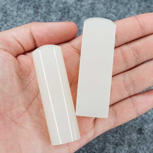 玉石類印章材質僅能以上崁的方式製作。★新生兒的胎毛頭髮在台語的發音為「發」,臍帶的台語發音為「肚財」並取財為主,將二者同時放在一方一圓的印章中即為發財印章,所以這是給新生兒最好的禮物。 ★乳牙象徵含義有「咬錢入庫」,這些都象徵家人對著新生兒的祝福與期待。以民間習俗來說,若製作一對臍帶胎毛章,圓章放臍帶,方章放胎毛;若是製作單章會將胎毛、臍帶一起放。圓章、方章的應用上,「圓章」適合用在流動性資產,例如銀行開戶、基金股票投資、圓形的意象也有「錢滾錢」的象徵;「方章」則是用在不動產、商業合約等用途,有關信用、誠信,方形「方方正ˋ正、四平八穩」的形象,有如守信、永恆不變的象徵。