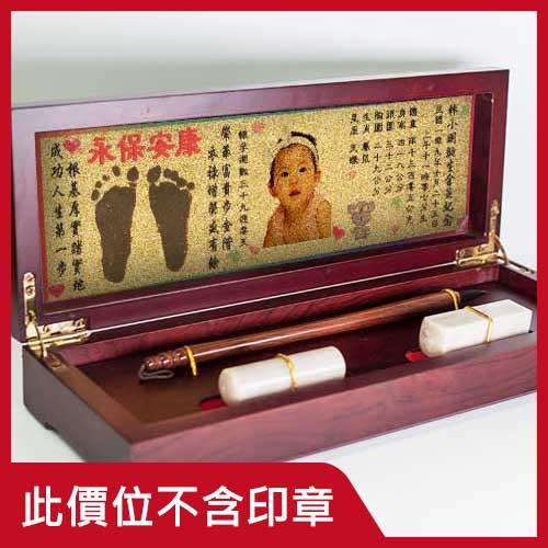 臍帶印章 / 嬰兒三寶組 一筆兩印金腳印盒(X02) $3400元 筆桿材質: 請選擇筆桿材質 綠檀 紅紫檀 黑檀 赤角琥珀 (加100元) 刻印名字: 數量 - + 加入購物車 商品描述 1.商品製作時間為30~60個工作天,工作天不含六、日及國定假日,請確認沒有問題後再下單。 2.下單前建議加LINE@線上客服(帳號:@ahg1419i) 。 3.此組合僅含一筆兩印盒x1、胎毛筆x1、金腳印x1、印尼x1。 4.寶寶臍帶胎毛章需另外加購。 5.刻印名字欄位不需填寫 【一筆兩印金腳印】內部介紹 【一筆兩印金腳印】胎毛筆桿