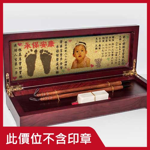 臍帶印章 / 嬰兒三寶組 兩筆一印金腳印盒(X02) $5200元 筆桿材質: 請選擇筆桿材質 黑檀 紅紫檀 綠檀 赤角琥珀 (加200元) 刻印名字: 數量 - + 加入購物車 商品描述 1.商品製作時間為30~60個工作天,工作天不含六、日及國定假日,請確認沒有問題後再下單。 2.下單前建議加LINE@線上客服(帳號:@ahg1419i) 。 3.此組合僅含兩筆一印盒x1、胎毛筆x1、金腳印x1、印尼x1。 4.寶寶臍帶胎毛章需另外加購。 5.刻印名字欄位不需填寫 【兩筆一印金腳印】內部介紹 【兩筆一印金腳印】胎毛筆桿