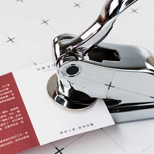 由於桌上型鋼印在紙上可壓印的範圍有限,故在製作前須先確認好鋼模的方向,這樣才能將圖案蓋印在適合的位置。