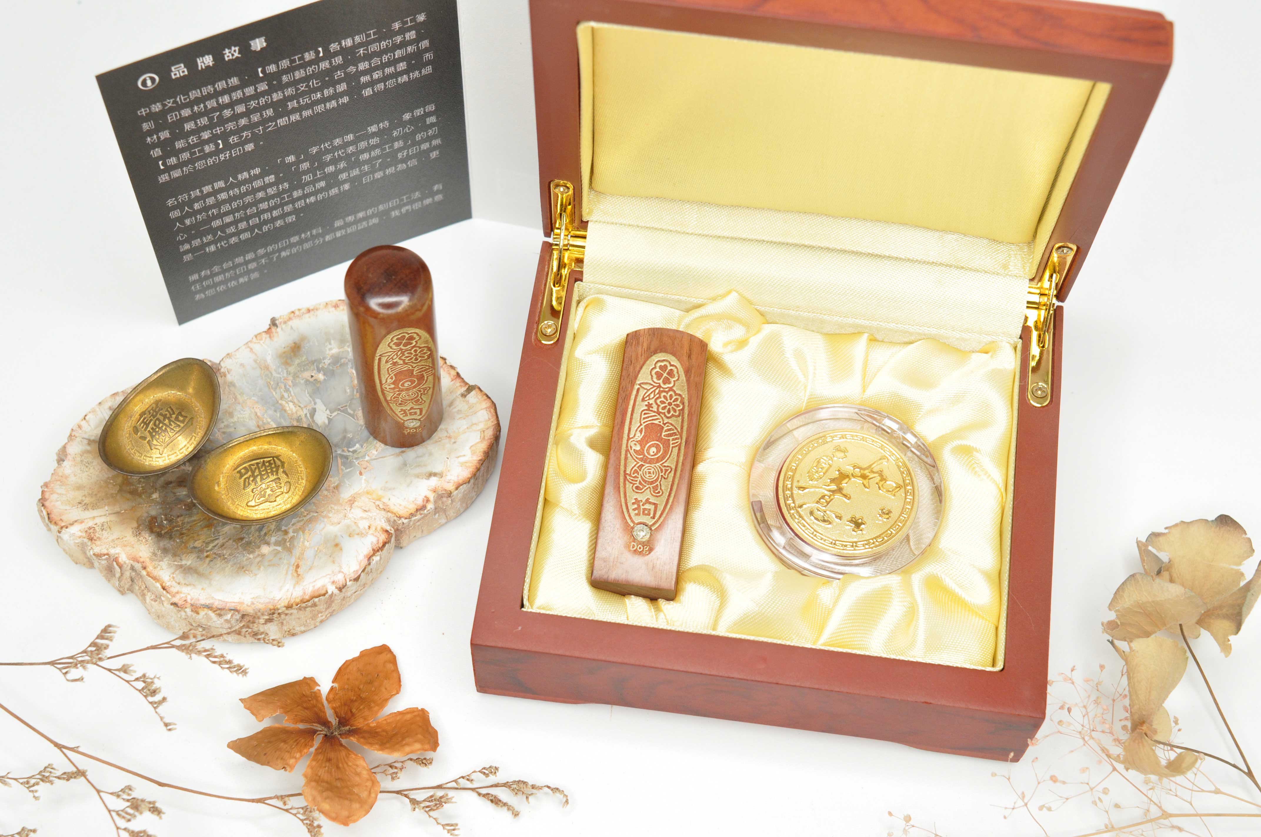 臍帶印章 / 檀木肚臍章 紅紫檀【金漆雕刻】臍帶印章可愛狗-上崁/乙顆 $2300元 印章規格: 請選擇印章規格 單章:6分圓/上崁 單章:6分方/上崁 對章:6分圓+6分方/上崁 (加2300元) 刻印字體: 請選擇刻印字體 印象體 小篆J3 小篆J5 小篆J7 行書S7 行書S5 毛行書S9 篆體J8 篆體J6 方角印篆A2 圓角印篆A3 魏碑體W5 古印體A05 隸書L5 隸書L7 明體M9 仿宋F5 正楷K9 毛楷K8 圓體R7 福體DF7 黑體B7 海報體P5 淡古文O6 順圓印篆 (加200元) 圓章/雕刻款式: 請選擇圓章/雕刻款式 如意 富貴 平安 吉祥 方章/雕刻款式: 請選擇方章/雕刻款式 如意 富貴 平安 吉祥 刻印名字: 數量 - + 加入購物車 商品描述 1.商品製作時間為30~60個工作天,工作天不含六、日及國定假日,請確認沒有問題後再下單。 2.下單前建議加LINE@線上客服(帳號:@ahg1419i) ,客服可提供360度印材照片,協助您選擇您要得肚臍章印材。 3.紅紫檀顏色、紋路、斑點均為自然生成,其中少許天然氣孔乃天地孕育軌跡,絕非瑕疵,紅紫檀【金漆雕刻】臍帶胎毛章請依實品為主。 4.價格如有異動未能及時更新,以本公司實際販售價格為主,請見諒。 商品材質:【紅紫檀】 印章高度:兩吋長約6 cm 印面尺寸:約1.8cm x 1.8cm 嚴選 紅紫檀【金漆雕刻】肚臍章 唯原工藝【肚臍章】給寶貝的第一份禮物,永恆的愛與祝福。嚴選【紅紫檀】特A級品質,全方位滿足每一位爸爸媽媽,為寶貝挑選第一份禮物,製作最具實用及紀念價值的滿月禮嬰兒三寶。給媽媽的紀念;送給寶寶的祝福, 珍藏象徵寶寶出生、成長;媽媽懷胎十月的出生胎毛與臍帶,祝福寶寶平安健康的長大,肚臍章是給寶貝最好的紀念禮物。 肚臍章單章組合:肚臍章x1、木盒x1、印泥x1 肚臍章對章組合:肚臍章x2(一方一圓)、木盒x1、印泥x1 紅紫檀【金漆雕刻】臍帶章 加碼贈品 每人限定一份,贈品內容:防撞布包x1 贈品款式為隨機出貨,下圖為示意圖,贈品款是以實際收到的為主。 紅紫檀【金漆雕刻】臍帶章 上崁&側封 ★新生兒的胎毛頭髮在台語的發音為「發」,臍帶的台語發音為「肚財」並取財為主,將二者同時放在一方一圓的印章中即為發財印章,所以這是給新生兒最好的禮物。 ★乳牙象徵含義有「咬錢入庫」,這些都象徵家人對著新生兒的祝福與期待。以民間習俗來說,若製作一對臍帶胎毛章,圓章放臍帶,方章放胎毛;若是製作單章會將胎毛、臍帶一起放。圓章、方章的應用上,「圓章」適合用在流動性資產,例如銀行開戶、基金股票投資、圓形的意象也有「錢滾錢」的象徵;「方章」則是用在不動產、商業合約等用途,有關信用、誠信,方形「方方正ˋ正、四平八穩」的形象,有如守信、永恆不變的象徵。 紅紫檀【金漆雕刻】臍帶章 天然印材 獨特唯一 紅紫檀牛角顏色、紋路、斑點均為自然生成,每個黑檀印材都是獨一無二的,建議加LINE@線上客服(帳號:@ahg1419i) ,客服可提供360度印材照片,協助您選擇您要得肚臍章印材。 【紅紫檀】臍帶章 字體選擇 【花赤牛角】肚臍章-尺寸說明 加購【高級檀木印章盒】 材質有頂級紫光黑檀木與頂級紅紫檀木,印章章盒規格齊全,建議加LINE@線上客服(帳號:@ahg1419i) ,客服可提供檀木印章盒照片。