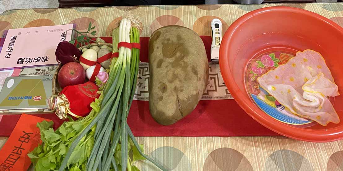 家長需要自行準備:(蔥、韭菜、芹菜、熟雞蛋、熟鴨蛋、石頭、銅板、臉盆、紗布巾)。附註:若家長需要我們幫忙準備,則需額外收備品費用。