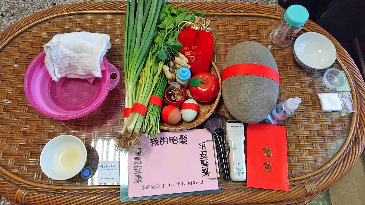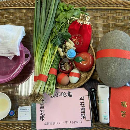 家長需要自行準備:(蔥、韭菜、芹菜、熟雞蛋、熟鴨蛋、石頭、銅板、臉盆、紗布巾)。附註:若家長需要我們幫忙準備,則需額外收備品費用。