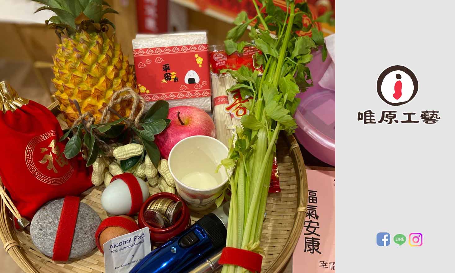 家長需要自行準備:(蔥、韭菜、芹菜、熟雞蛋、熟鴨蛋、石頭、銅板、臉盆、紗布巾)。附註:若家長需要我們幫忙準備,則需額外收備品費用。