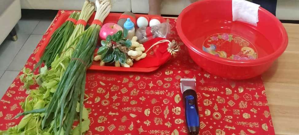 家長需要自行準備:(蔥、韭菜、芹菜、熟雞蛋、熟鴨蛋、石頭、銅板、臉盆、紗布巾)。附註:若家長需要我們幫忙準備,則需額外收備品費用。