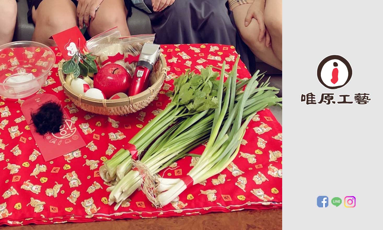 家長需要自行準備:(蔥、韭菜、芹菜、熟雞蛋、熟鴨蛋、石頭、銅板、臉盆、紗布巾)。附註:若家長需要我們幫忙準備,則需額外收備品費用。