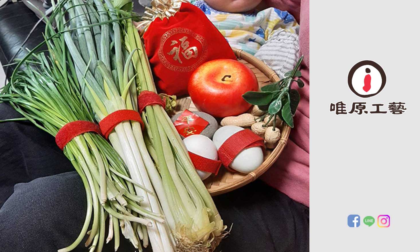 家長需要自行準備:(蔥、韭菜、芹菜、熟雞蛋、熟鴨蛋、石頭、銅板、臉盆、紗布巾)。附註:若家長需要我們幫忙準備,則需額外收備品費用。