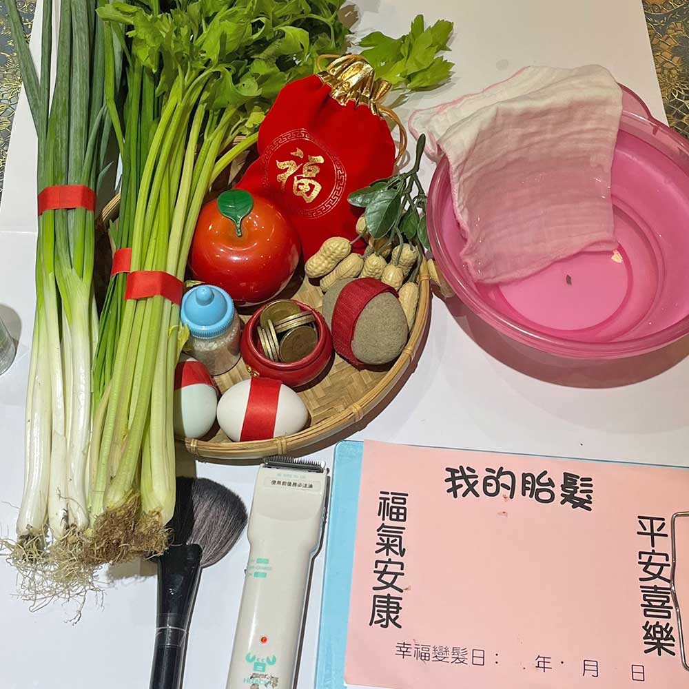 家長需要自行準備:(蔥、韭菜、芹菜、熟雞蛋、熟鴨蛋、石頭、銅板、臉盆、紗布巾)。附註:若家長需要我們幫忙準備,則需額外收備品費用。