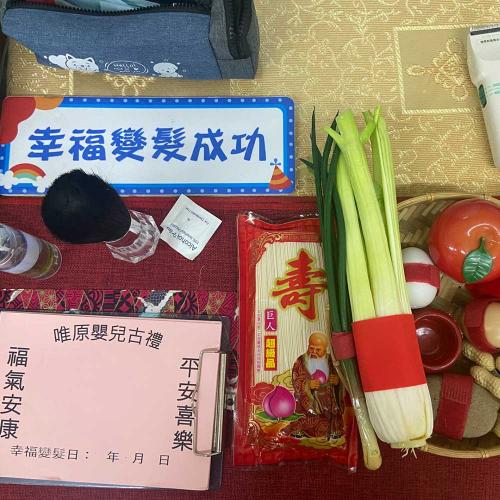 家長需要自行準備:(蔥、韭菜、芹菜、熟雞蛋、熟鴨蛋、石頭、銅板、臉盆、紗布巾)。附註:若家長需要我們幫忙準備,則需額外收備品費用。