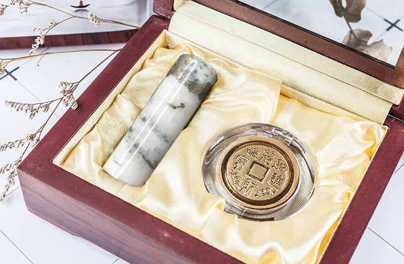 玉石類印章材質僅能以上崁的方式製作。★新生兒的胎毛頭髮在台語的發音為「發」,臍帶的台語發音為「肚財」並取財為主,將二者同時放在一方一圓的印章中即為發財印章,所以這是給新生兒最好的禮物。 ★乳牙象徵含義有「咬錢入庫」,這些都象徵家人對著新生兒的祝福與期待。以民間習俗來說,若製作一對臍帶胎毛章,圓章放臍帶,方章放胎毛;若是製作單章會將胎毛、臍帶一起放。圓章、方章的應用上,「圓章」適合用在流動性資產,例如銀行開戶、基金股票投資、圓形的意象也有「錢滾錢」的象徵;「方章」則是用在不動產、商業合約等用途,有關信用、誠信,方形「方方正ˋ正、四平八穩」的形象,有如守信、永恆不變的象徵。