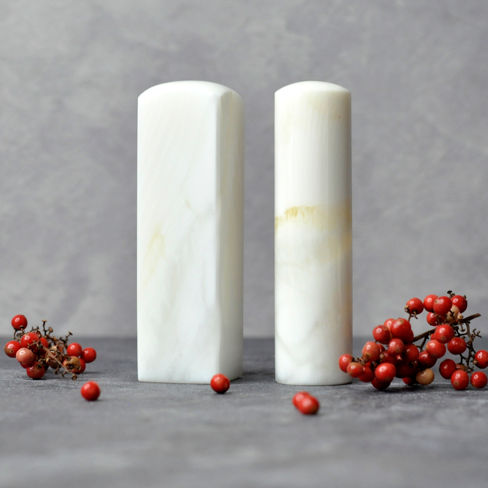 玉石類印章材質僅能以上崁的方式製作。★新生兒的胎毛頭髮在台語的發音為「發」,臍帶的台語發音為「肚財」並取財為主,將二者同時放在一方一圓的印章中即為發財印章,所以這是給新生兒最好的禮物。 ★乳牙象徵含義有「咬錢入庫」,這些都象徵家人對著新生兒的祝福與期待。以民間習俗來說,若製作一對臍帶胎毛章,圓章放臍帶,方章放胎毛;若是製作單章會將胎毛、臍帶一起放。圓章、方章的應用上,「圓章」適合用在流動性資產,例如銀行開戶、基金股票投資、圓形的意象也有「錢滾錢」的象徵;「方章」則是用在不動產、商業合約等用途,有關信用、誠信,方形「方方正ˋ正、四平八穩」的形象,有如守信、永恆不變的象徵。