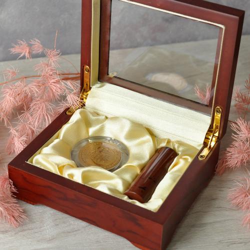 肚臍章對章組合:肚臍章x2(一方一圓)、木盒x1、印泥x1