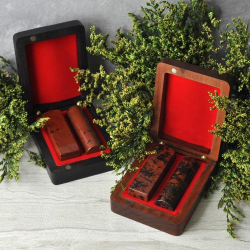 材質有頂級紫光黑檀木與頂級紅紫檀木,印章章盒規格齊全,建議加LINE@線上客服(帳號:@ahg1419i)