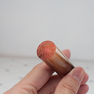 上網搜尋後,我看到位於台南的「唯原工藝」,他們專門製作肚臍章、胎毛筆和一般印章,網站的商品圖片讓人覺得很有質感,於是決定找他們製作。姪女出生後我向弟弟、弟媳說明原委,他們很樂意地將女兒珍貴的肚臍交給我,由我掛號郵寄至唯原工藝。唯原會將每個寶寶的肚臍或胎毛個別建檔,讓人很安心。