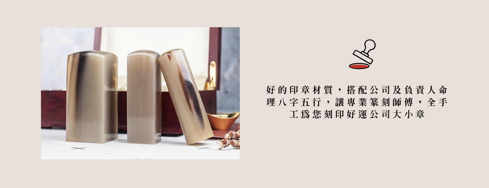 好的印章材質,搭配公司及負責人命理八字五行,讓專業篆刻師傅,全手工為您刻印好運公司大小章