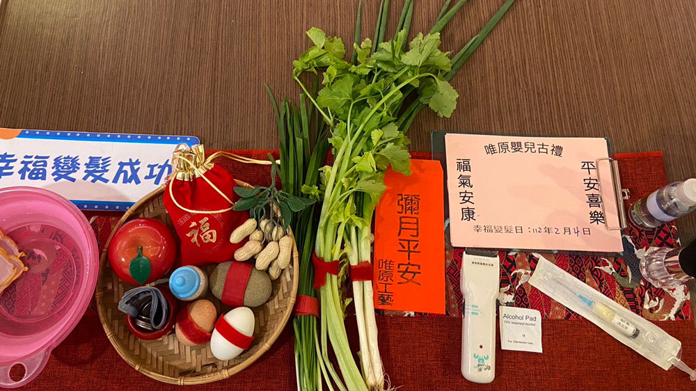 專業人員帶領剃頭儀式,講解嬰兒剃頭儀式和祝福吉祥話剃胎毛